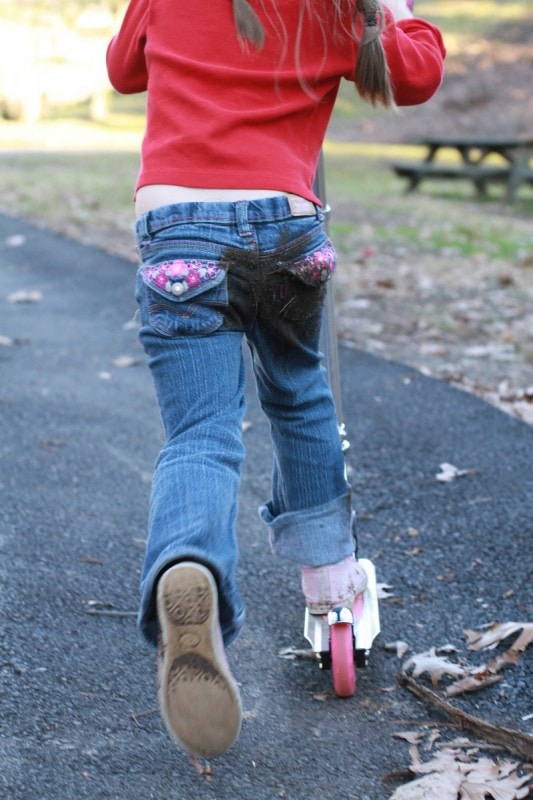 It’s perfect for scooters, which all three of the girls have (Lisey’s is from Goodwill, and Sonia and Zoe’s were Christmas presents.) They have so much fun with these!