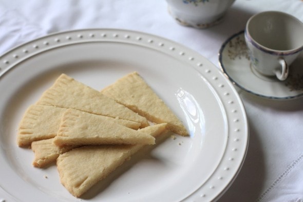 Lisey needed some tea cookies for a tea party with her sisters and a friend recently, so we whipped up some very easy 3-ingredient shortbread. It was delicious, quick, and perfect with tea. 😉