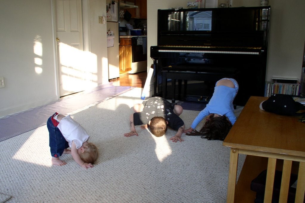 And here’s one of all 3 kids from 2005 (because Zoe wasn’t born yet!). Sonia used to like to do a quasi-headstand like this, and her siblings thought it was so funny, they joined in.