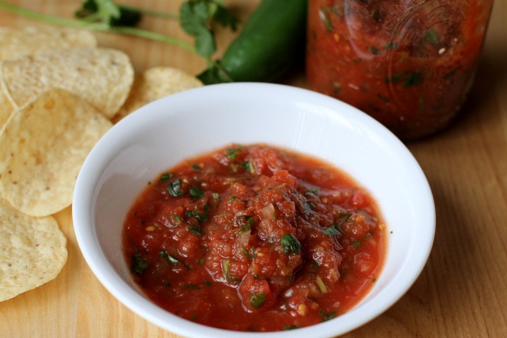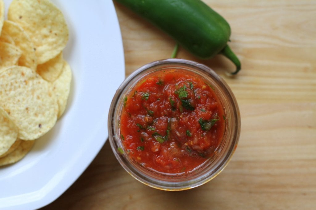Because everything goes into the blender, this is not so much like garden salsa, but more like the smooth-ish salsas you get when a restaurant brings out salsa and chips.