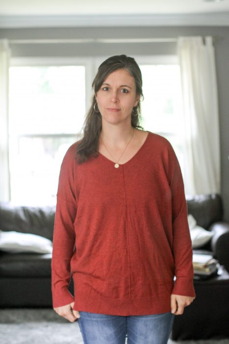 All that extra fabric settles in such unflattering ways on me when I put my arms down. I’ve worn oversized sweaters before and not had this problem, so I know it’s just a design issue.