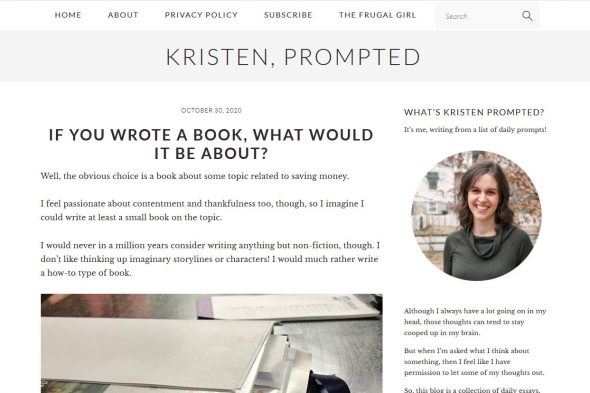 I write The Frugal Girl mainly to help and serve readers; I write at Kristen Prompted mainly for my own enjoyment.