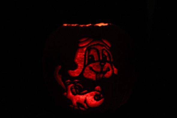 And I don’t have a photo of Sonia’s because she ran out of steam and did not finish carving hers. 😉