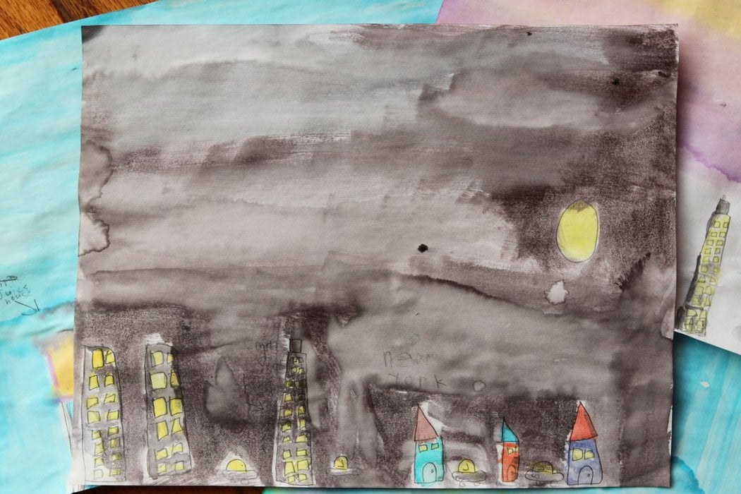 This is Zoe’s New York City watercolor. The cars totally crack me up.