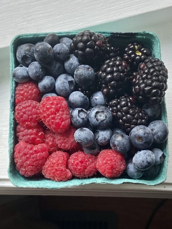 I’m amazed you have so many ripe berries! Strawberries and raspberries here too, but blackberries seem to need another month or so…?