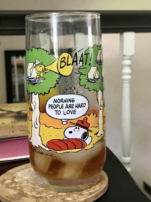 I don’t really agree with the sentiment on the glass (I am one of those morning people!), but Snoopy and Woodstock are so cute, it’s all right.