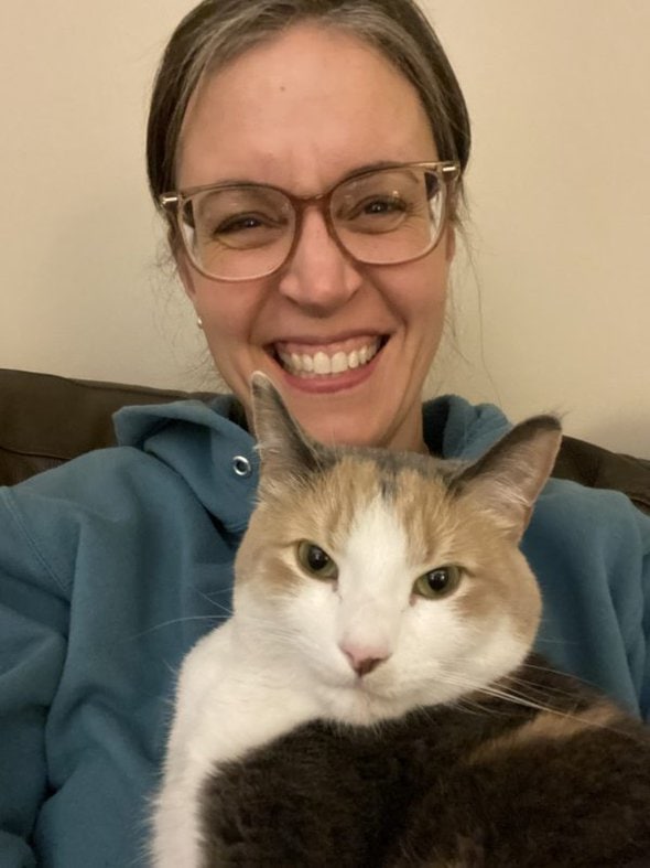 It’s not so tricky when it’s just a sheet like this, but if it’s a comforter on an unmade bed, a lump of cat is hard to notice. 😉