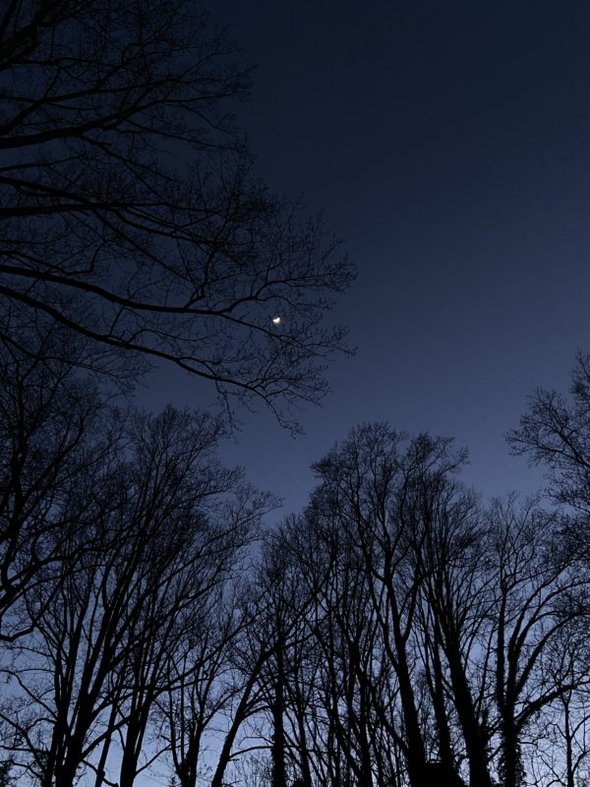 But the other night I pulled into my driveway, and when I got out and looked up at the moon between the bare branches, I thought about how beautiful that is too.