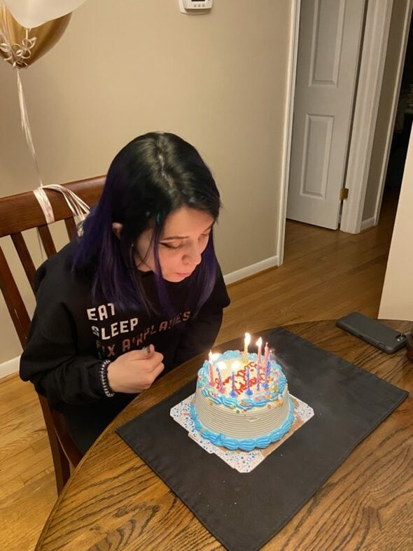 (For the 2021-2022 school year, she lived with my aunt and uncle near her aviation mechanic school.)