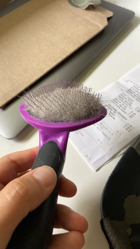 Shelly has never liked being brushed but I’m gonna see if she changes her mind with this type of brush. Perhaps she will be a convert.
