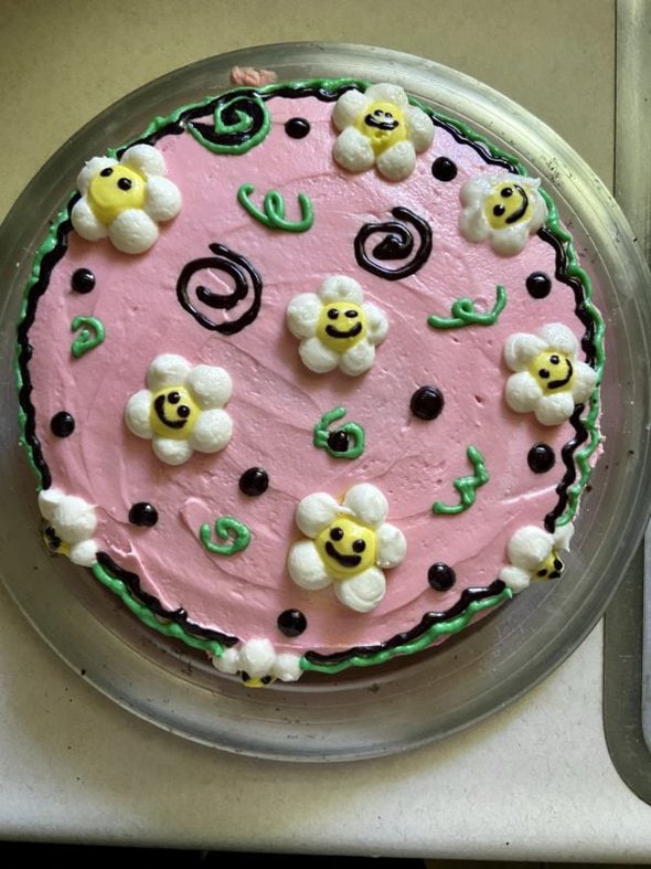 Her friend came over and the two of them decorated a pink cake, using Pinterest as inspiration.