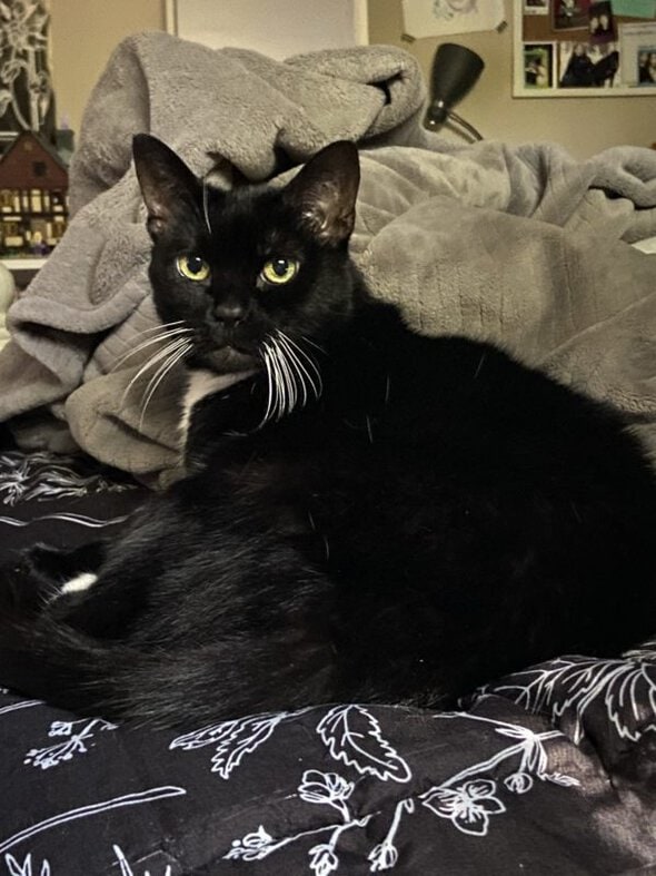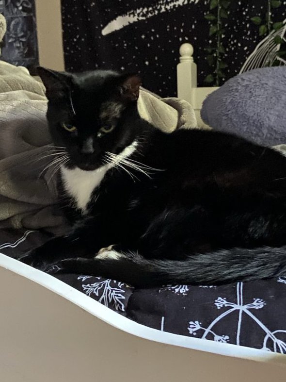 Then that night I was on a call with my support group friends and I looked to my left and there was Chiquita climbing up the curtains.