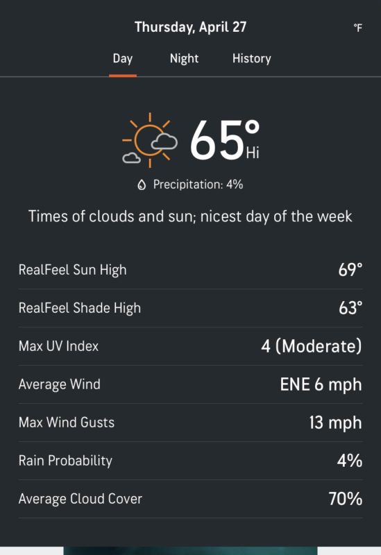 But it changed, and now my weather app says, “times of clouds and sun; nicest day of the week.”
