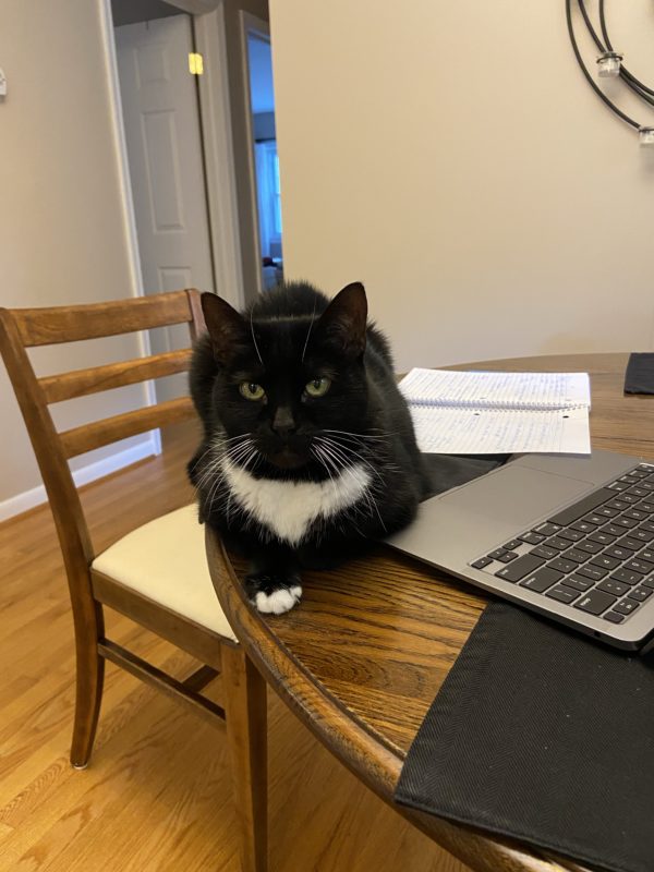 We got our cat fixed this week. I’m sure he’d love to go outside again, but he’s been entertaining and sweet to have inside. He looks just like your cat, Kristen but with a little white mustache added. :)
