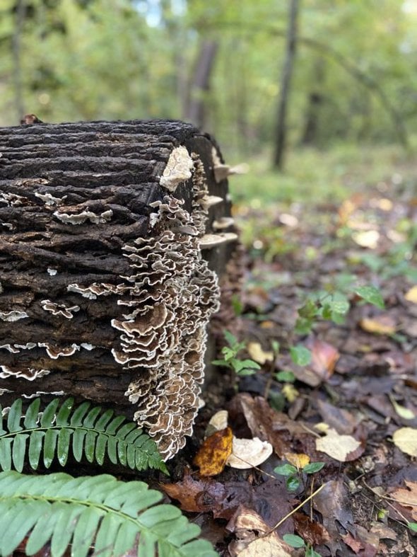 Last time, the trees were green and full, and now the leafy foliage is thinner and yellower, there are cool fungi to see, and some of the unpassable trails are now walkable since some of the grasses have thinned/died.