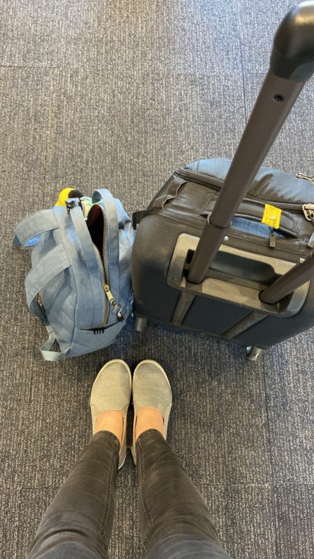 She was traveling solo since I was the one who got bumped from the flight. She made it to Chicago fine, navigated her delays, and ended up at home 24 hours ahead of me.
