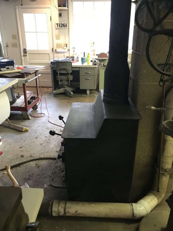 I sit at his garage desk with my laptop, and before the appointments, he always makes a fire in the wood stove in there so that I stay nice and toasty.