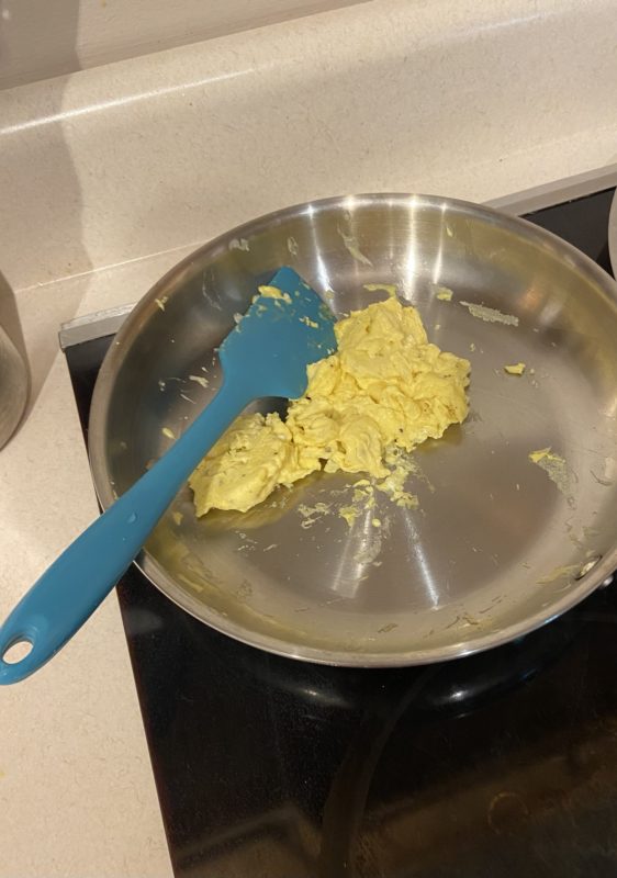 My online friend Kathleen told me about a way to make a stainless steel pan basically nonstick…I tried it, and I’m sold! I can now make scrambled eggs in my stainless steel pan, with super easy cleanup afterward.