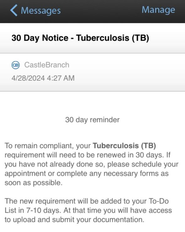 I was due to get a new TB test done for the next semester of nursing school, and I was planning on having to pay for it myself.