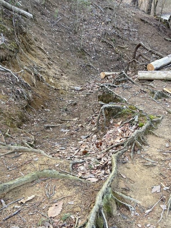 I’ve been climbing over and under two downed trees for quite some time now on the path by my gym and last time I was there, I was delighted to see that someone had cut the trees and removed them.