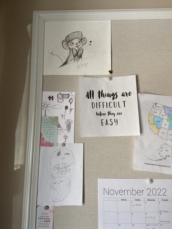 She’s on a draw-cute-animals kick and she made little drawings for my girls and me. I told her I’d put mine up on my bulletin board when I got home.