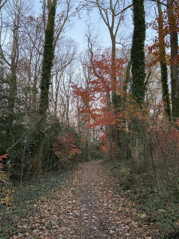 When I was walking in the woods this morning, I noticed that there are still a few red leaves out there.