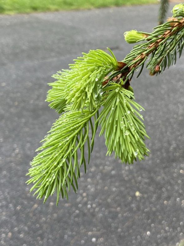 My big spruce tree is sending out so much new growth right now and the new little bits almost feel like silicone. I love touching them when I walk by.