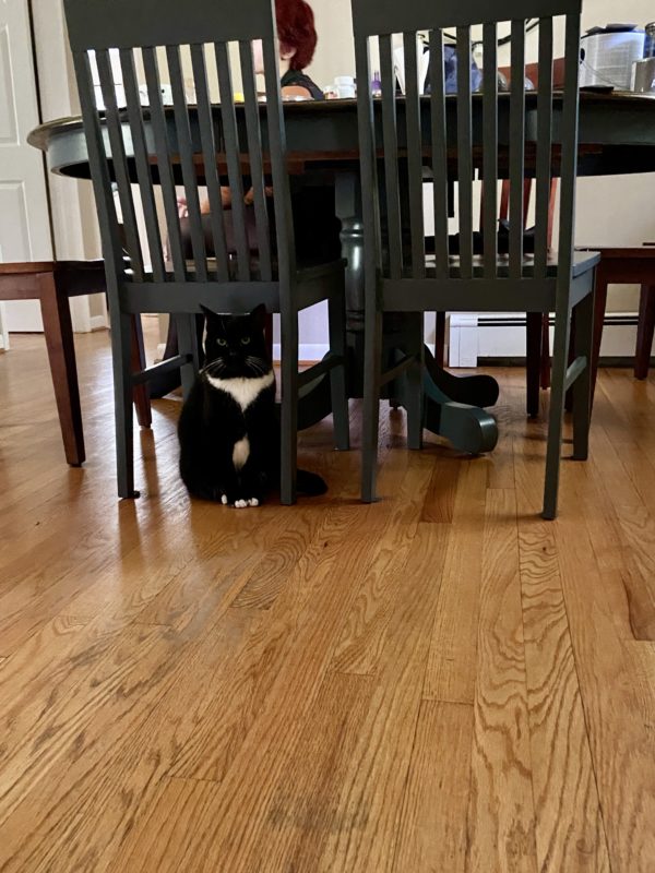 I like how she loves to sit underneath chairs or benches; I think she believes she’s invisible when she does that.