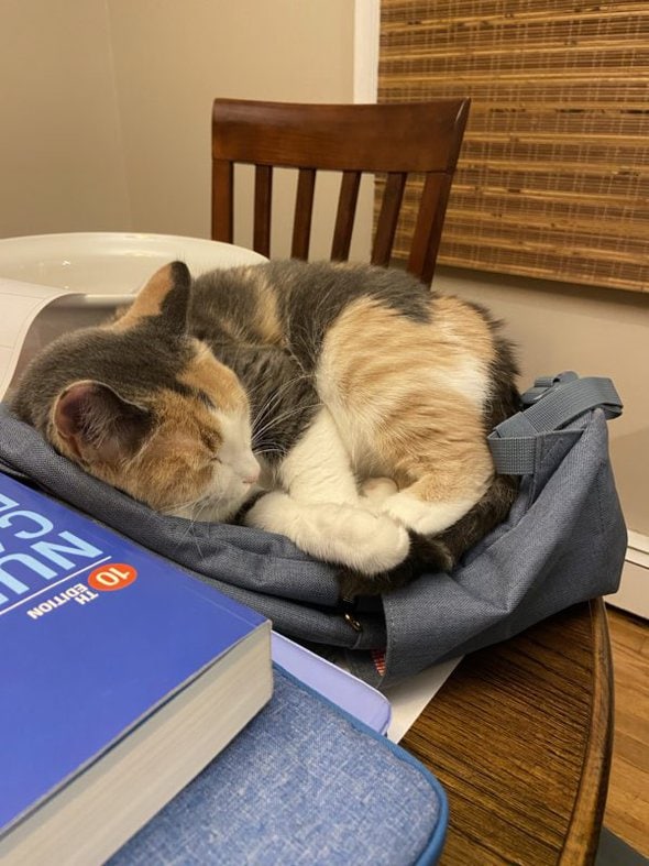 My little housemate is doing a good job of cheering me on. Whenever I pass something or get a test grade back, she says, “Mom, you’re doing great.”