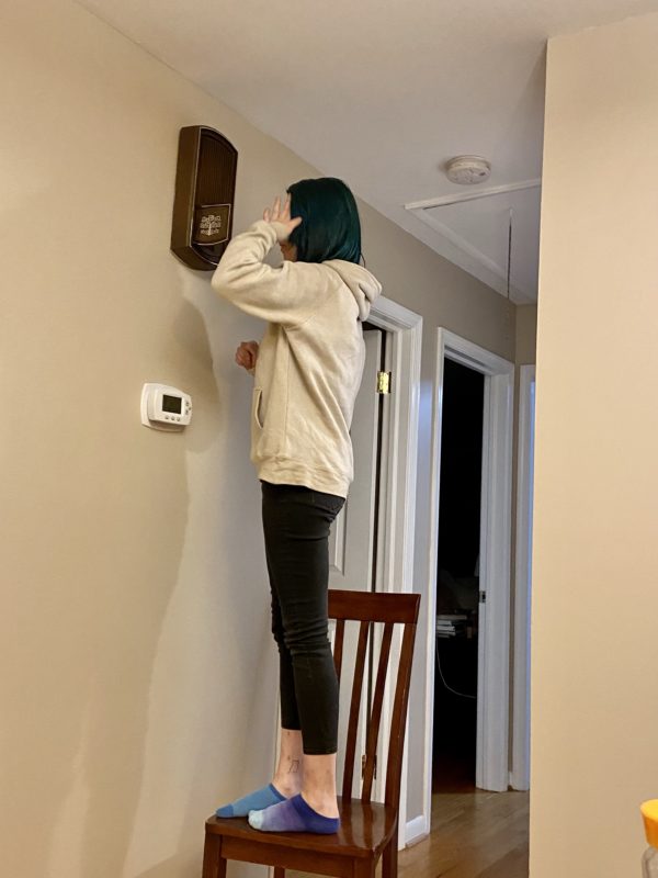 This week, Lisey realized that our vintage doorbell can play something like 25 different tunes. She got up on a chair and was running through them all the other night, and the way she was doing it was so funny.