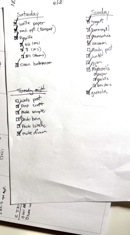 The last few days, she and I have been sending each other our to-do lists to help keep each other accountable.