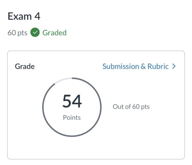 It has felt nigh onto impossible to get A’s in this semester, so I am delighted about a 90%. Whew!