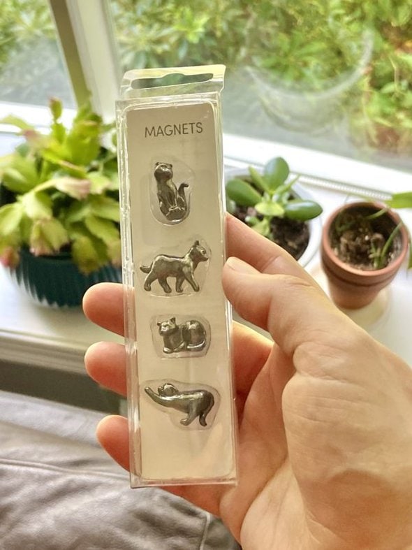 A local reader dropped off some cat magnets for Zoe and me, along with a cute little card. Thank you, Kim! <3