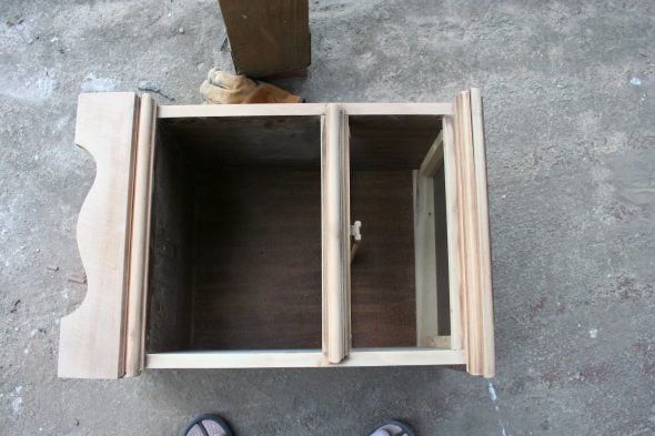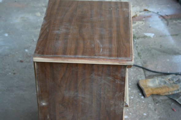 The top and sides were more of a plasticky veneer, so I could only scuff those. But that’s fine; as long as the shiny finish is removed, the primer will stick.