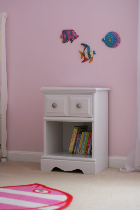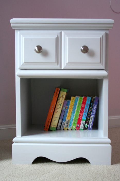 Zoe already had a nightstand from freecycle, which I’d painted white: