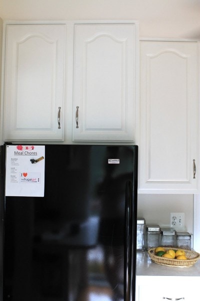42. for my white kitchen cabinets. Occasionally I happen across an old photo of the unpainted cabinets, and I am freshly reminded of how much better my kitchen looks now!