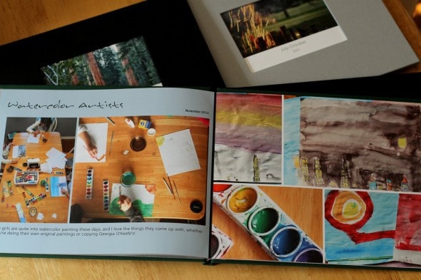 This is definitely faster than traditional scrapbooking, and the books take up a lot less space than scrapbooks, so that’s a plus.