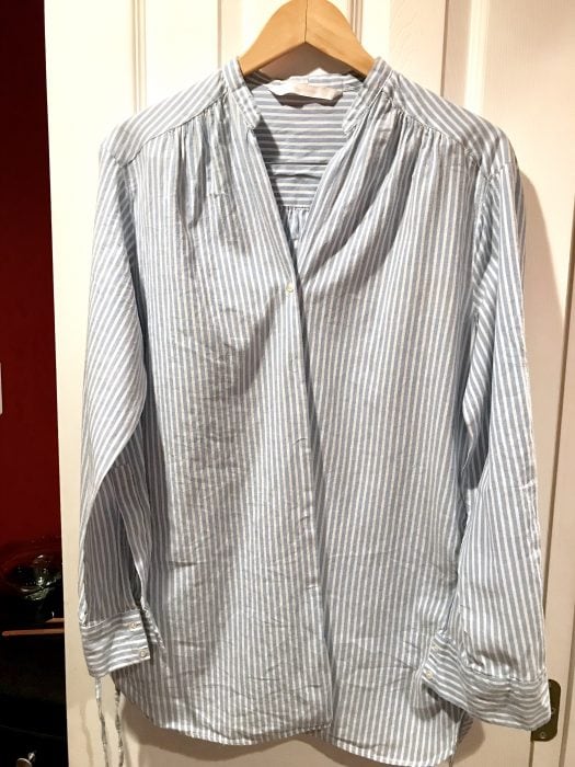 This button-down is a departure from Sonia’s usual style, but she likes it and is keeping it!