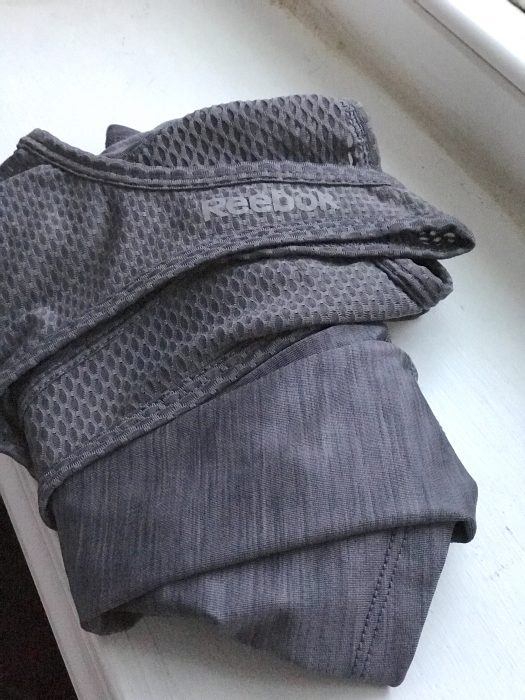 Lisey kept two workout items; a brand new with tags workout top and a like-new Reebok workout tank top.