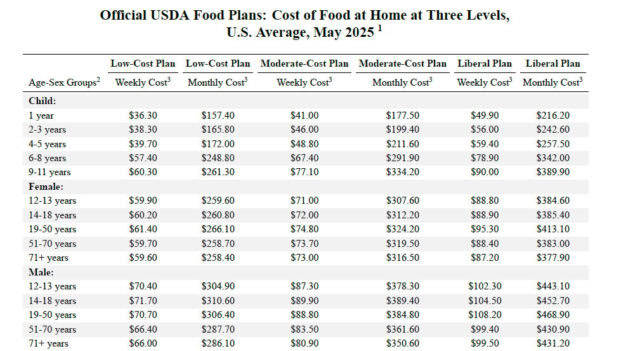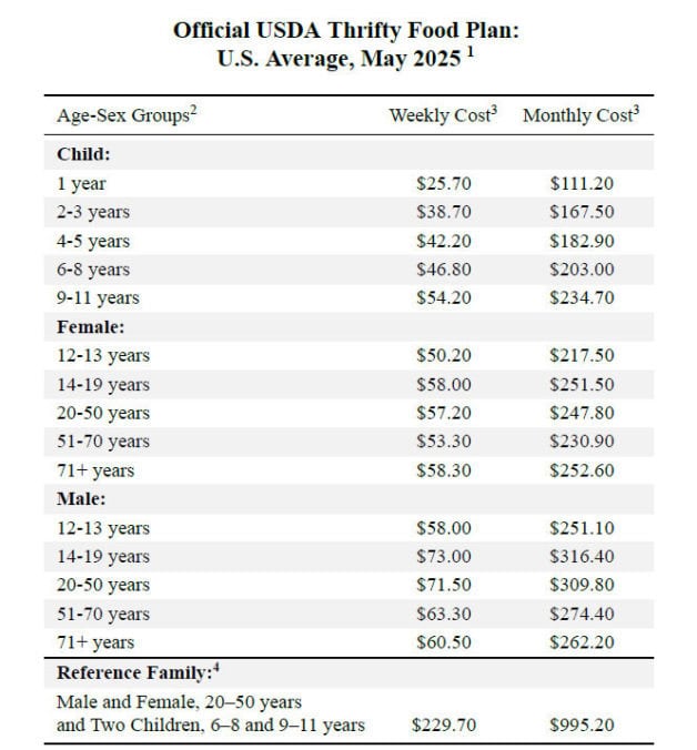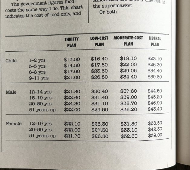 Amy shared the USDA’s Cost of Food at Home chart for 1993, and of course, she and her family came in WAY below even the thrifty plan.