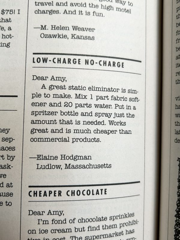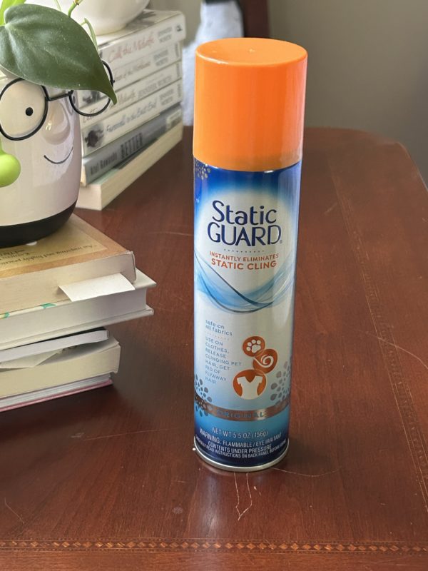 I don’t use a lot of anti-static spray, but occasionally I haul out my can of Static Guard, especially for my black long-sleeved dress that I often wear to the symphony.