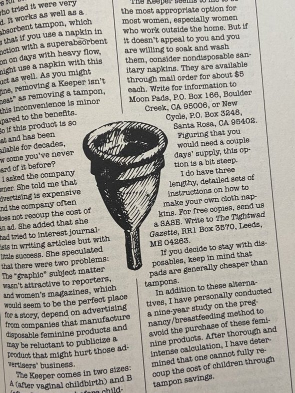 Somehow this article completely fell out of my memory, but here it is. I had no idea menstrual cups were even a thing back then.