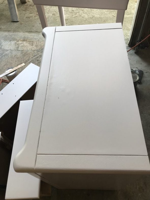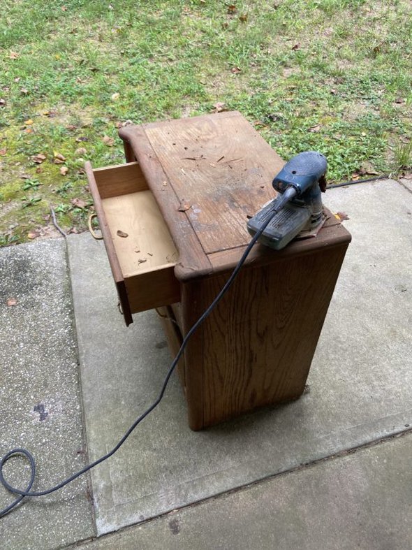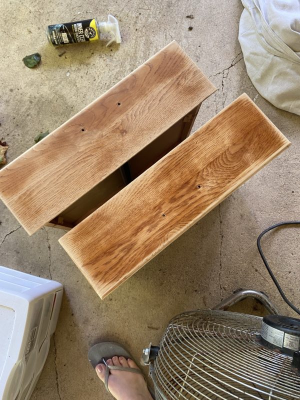 The drawers were in much better shape than the top. Incidentally, I love how easy it is to sand drawer fronts. There are no pesky interior corners where my sander won’t fit!