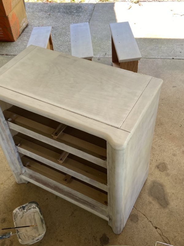 I brought the nightstand inside for painting because it was tooooo humid outside.
