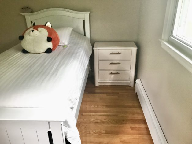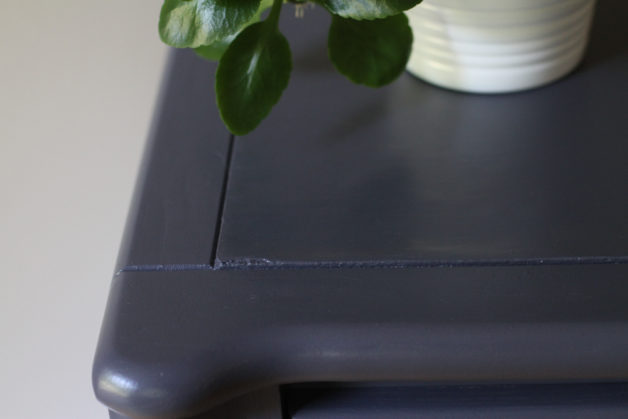 The top of this nightstand was damaged to begin with, so it does not look perfect. However, it’s better than it was, and I’m happy with that.