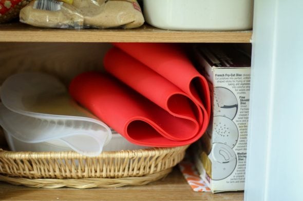 Once it’s dry, I fold it up and store it in the cabinet. It becomes quite compact; a great feature if your kitchen, like mine, isn’t long on storage.