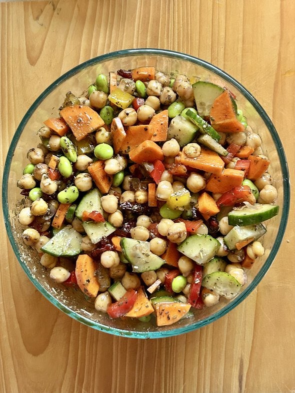 A more veggie-forward version of the chickpea salad Aldi sells