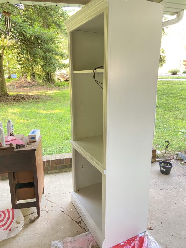 Bookshelves are SO MUCH WORK to redo because they have tons and tons of visible surface area.