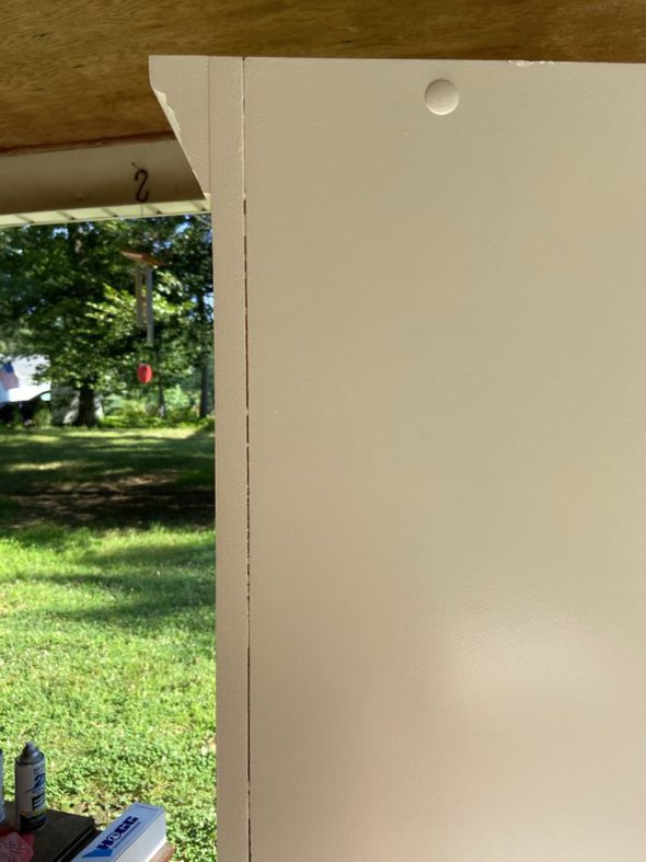 Remember how I was saying I caulk to fill in gaps? Here’s an example…the seam on the side of this shelf looked dark once I painted.