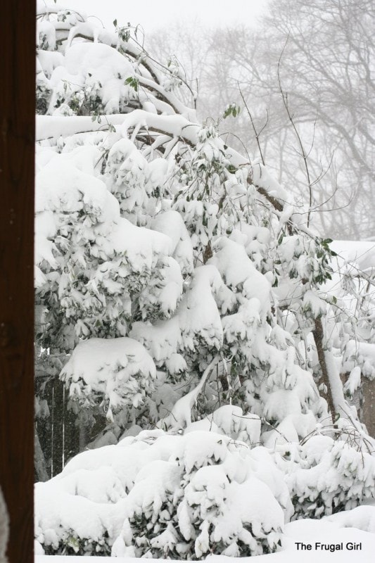 This I’m a little sad about. My huge holly tree’s multiple trunks are splayed out in all directions, and I’m not too optimistic about how much they’ll spring back.